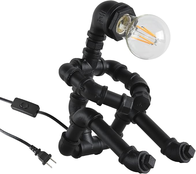 - Unique Industrial Design: Featuring a retro-inspired water pipe construction, this robot lamp adds a stylish and artistic touch to any space. Its industrial aesthetic blends seamlessly with modern, rustic, or eclectic decor.