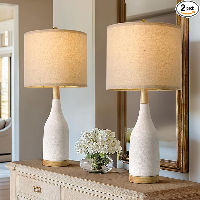 PORTRES 27" Ceramic Table Lamps for Bedroom Living Room Vintage Lamp Set of 2 Bedside Nightstand Lamp Large Farmhouse Rustic Boho Retro Modern Table Lamp Light Home Office Desk Deco Gifts, White