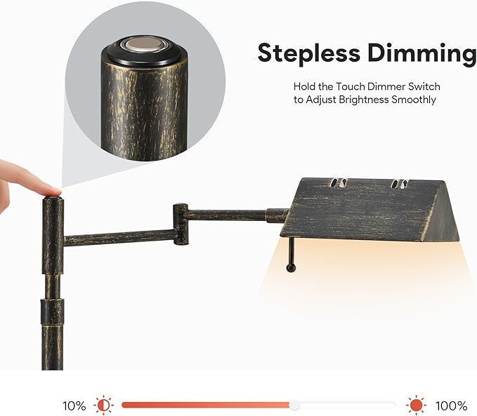 - Effortless Touch Control: The touch switch on our pharmacy table lamp makes adjusting the light super easy. Just tap to switch between 3 color temperatures (3000K, 4000K, 6000K), or hold it down to smoothly intensify the light from 10% to 100%