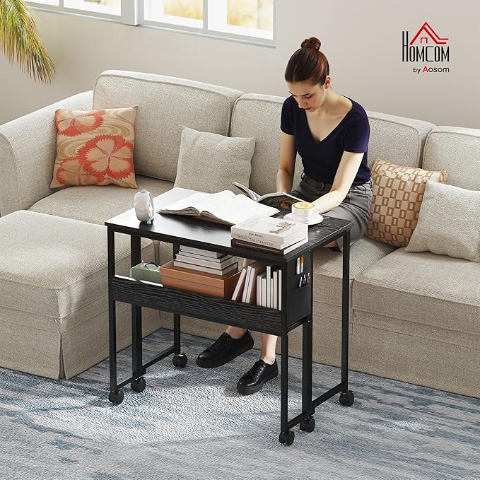HOMCOM Small Folding Desk, Rolling Computer Desk Foldable with Storage Bag and Shelf, 31.5" Portable Writing Table on Wheels for Small Spaces, Home Office, Study, Easy Assembly, Black
