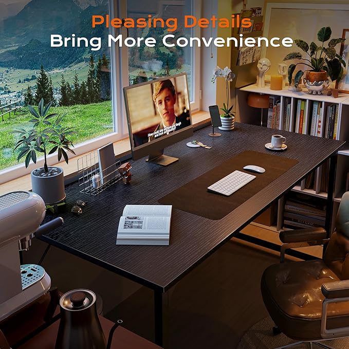 - 【Deeper Desktop for Daily Needs】Measuring 54''x23.6'', this deeper desktop of the laptop desk fits your laptop, lamp, planner, and even a second monitor, ideal for working from home, attending online classes, or organizing your study zone without clutter