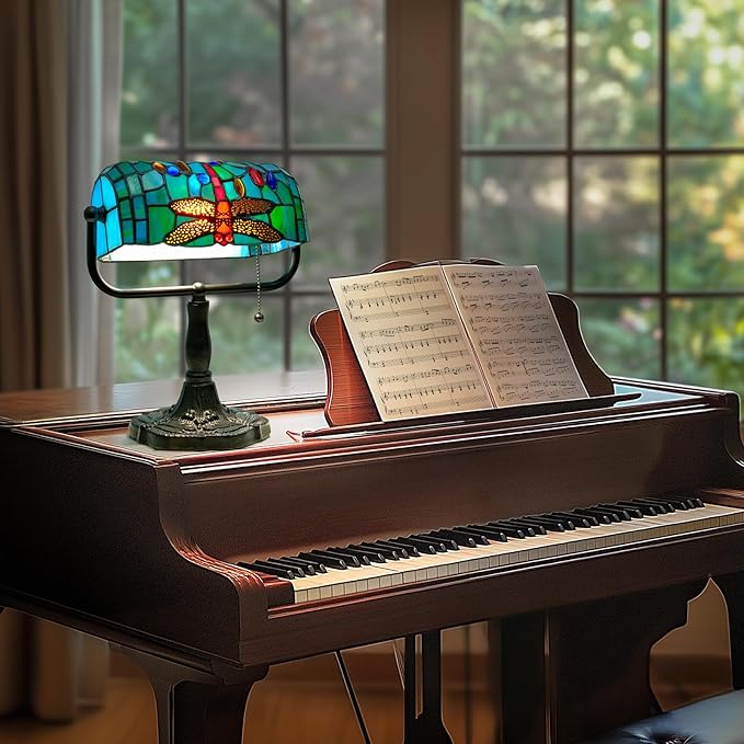 - Timeless Beauty & Durability - Upgrade your space with this exquisite bankers lamp, featuring a timeless Tiffany style lamp design crafted with beautiful stained glass accents. The stained glass lamp blends vintage charm with robust construction. Its table lamp design ensures enduring elegance, making it a perfect desk lamp for offices, pianos, or bedside tables