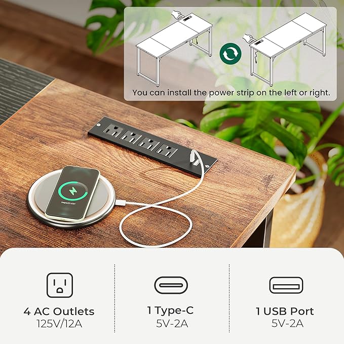 - 【Set Power Strip on the Right or Left】Charge all your devices with a 4 outlets, 2 USB ports, and 1 Type-C port on the writing desk, the 6.6ft cord adds flexibility, and the strip can be mounted on either side of the desk, so you can adjust it to suit your workspace needs