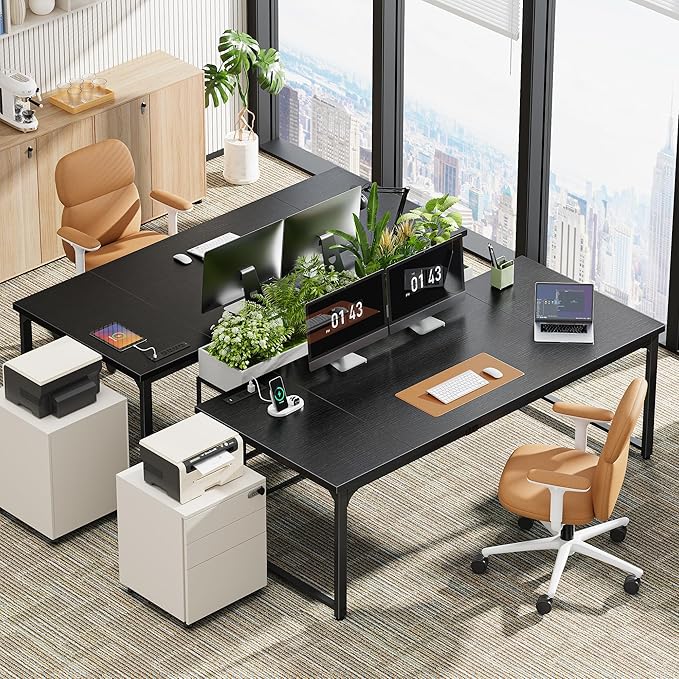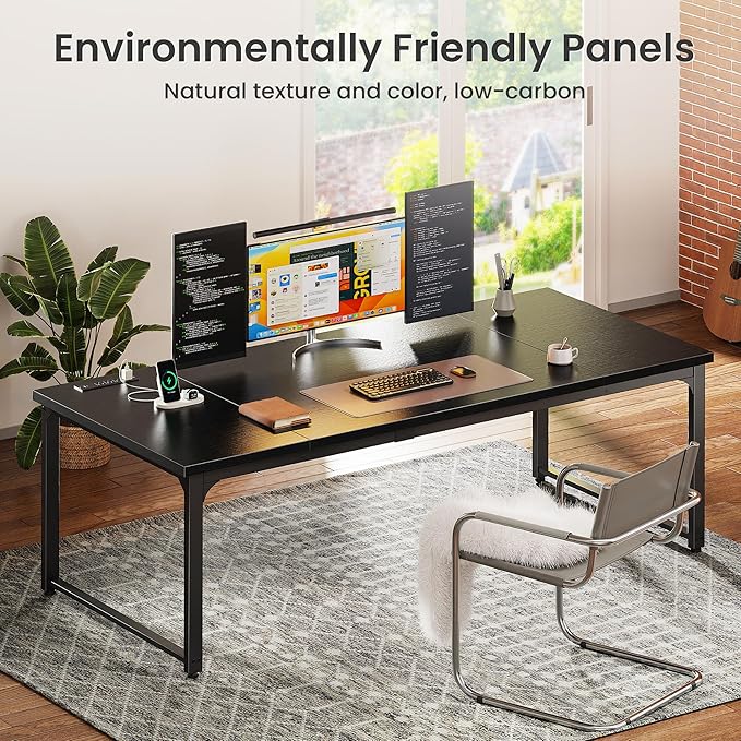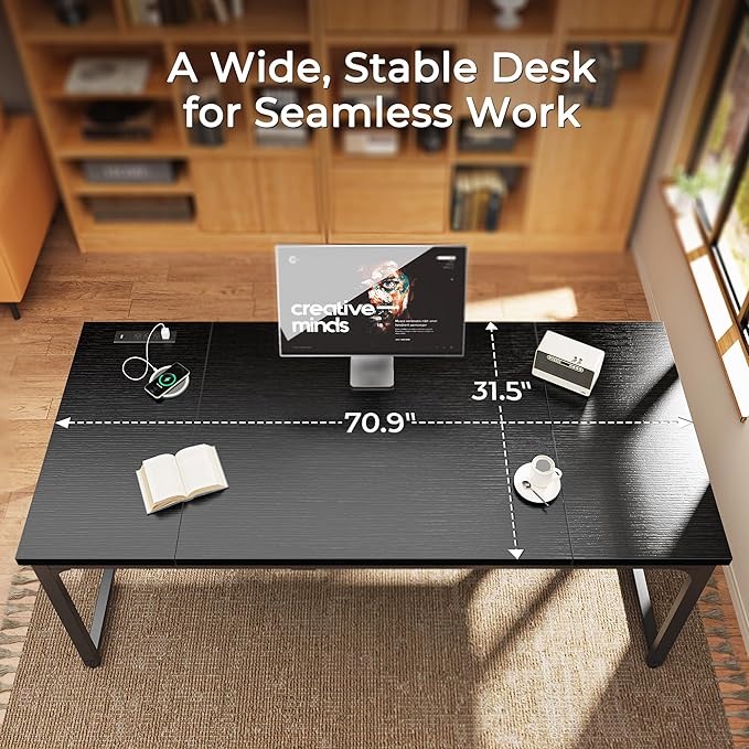 Huuger 71 x 31.5 Inch Desk with Power Outlets & USB-C,1.2 Inch Thicker Desktop, Robust Metal Tubes, Deep Computer Desk, Heavy Duty Office Desk, Work Desk for Home Office, Black