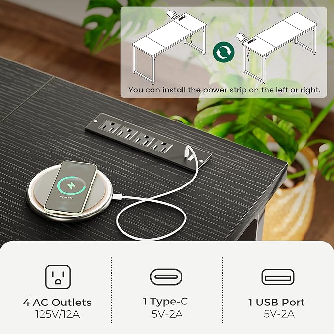 - 【Set Power Strip on the Right or Left】Charge all your devices with a 4 outlets, 2 USB ports, and 1 Type-C port on the writing desk, the 6.6ft cord adds flexibility, and the strip can be mounted on either side of the desk, so you can adjust it to suit your workspace needs