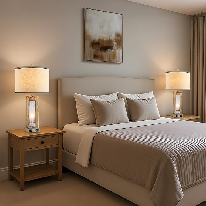 RORIANO 25" Set of 2 Farmhouse Table Lamps for Living Room with USB A+C Ports, Rustic Nightstand Lamp with White Night Light, Vintage Desk Lamp for Entryway Bedroom End Table, 4 Bulbs Included