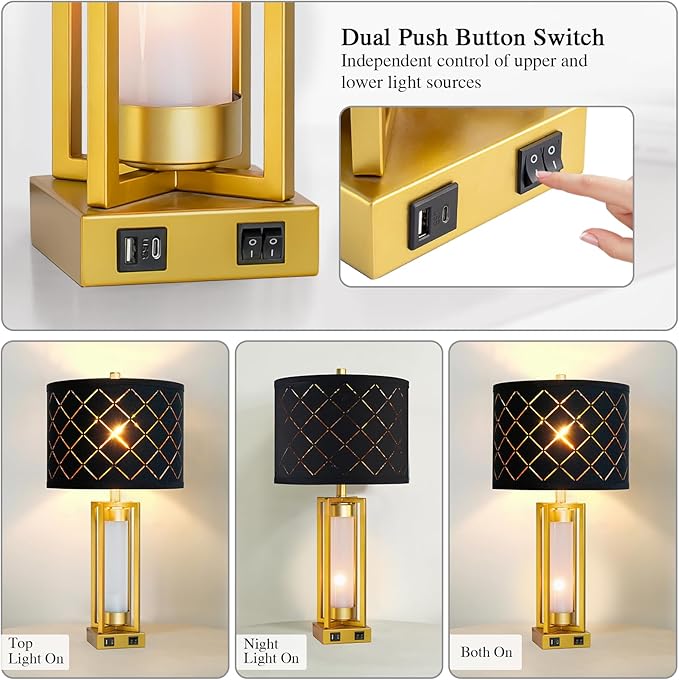 - Dual Push Button Switch: The bedside lamps have two independent switches to control the main light and night light respectively. Main light only/night light only/double on/double off, there are multiple lighting options to meet different lighting needs. This table lamp is a great choice for living room, bedroom, entrance, study, office.