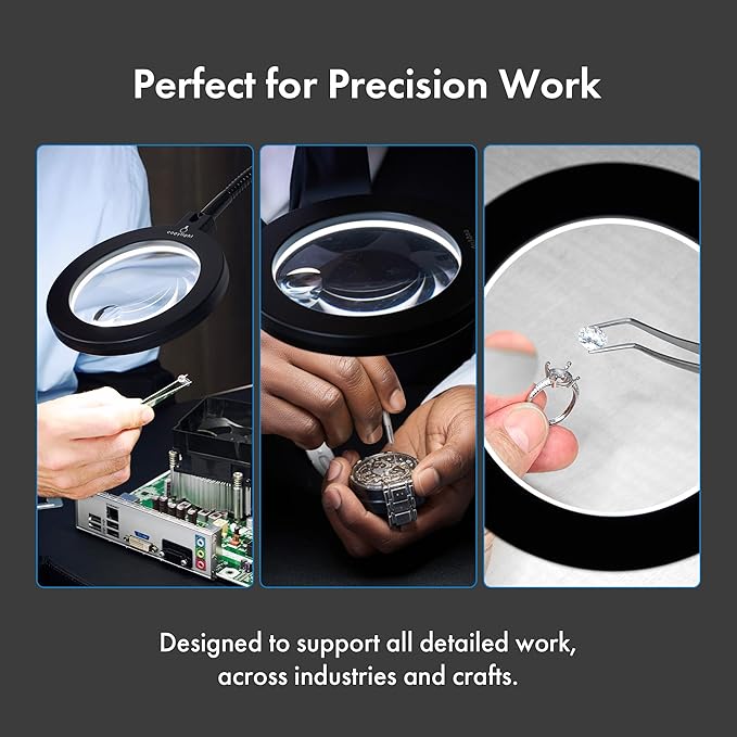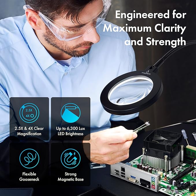 Magnetic Work Light, Led Machine Light with Magnifying Glass, 23.5in Flexible Gooseneck Magnetic Base Lamp for Steel Lathe and Drill Press, 3400Lux 10.5W 110V