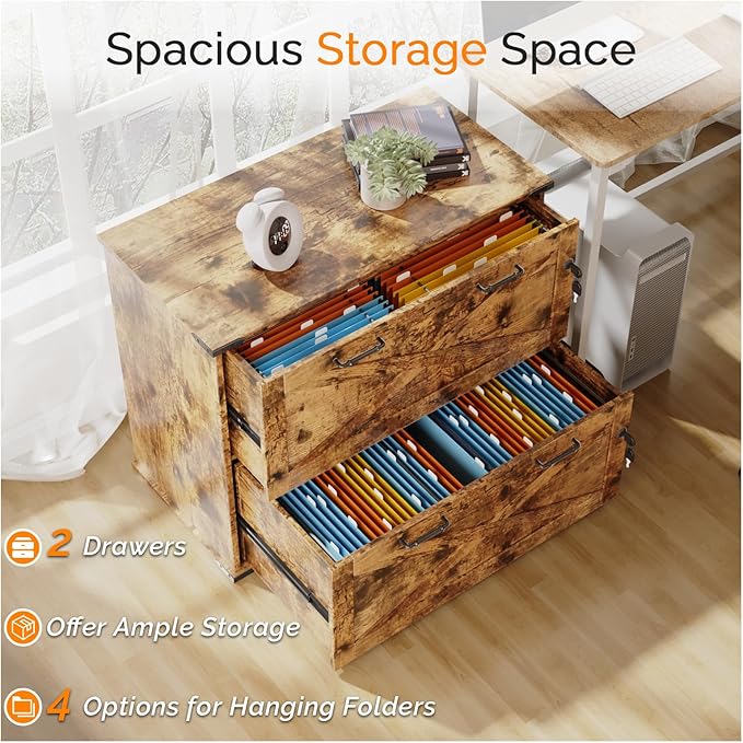 VINGLI 2 Drawer File Cabinet with Lock, Home Office Filing Organizer, for Letter Legal A4 Size File Folder Storage, Modern Farmhouse, Wood Lateral Filing Cabinet, Archivador (Rustic Brown)