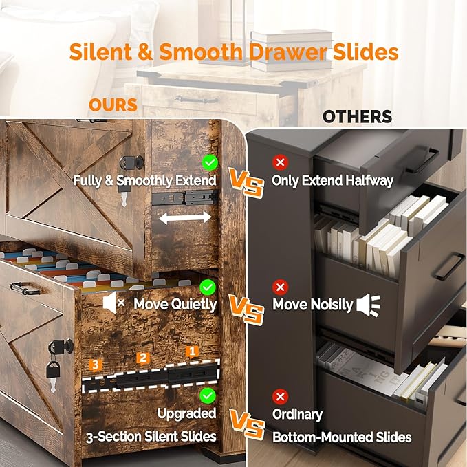 - 【Silent Sliding Perfection】The three-section slides ensure the drawers extend fully and smoothly, without a hint of noise, making it convenient for you to search for and access your file folders.