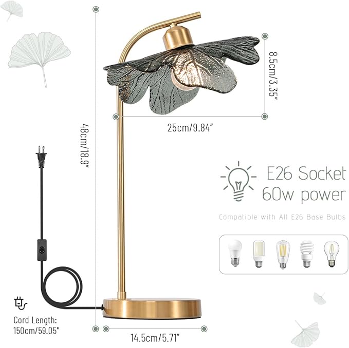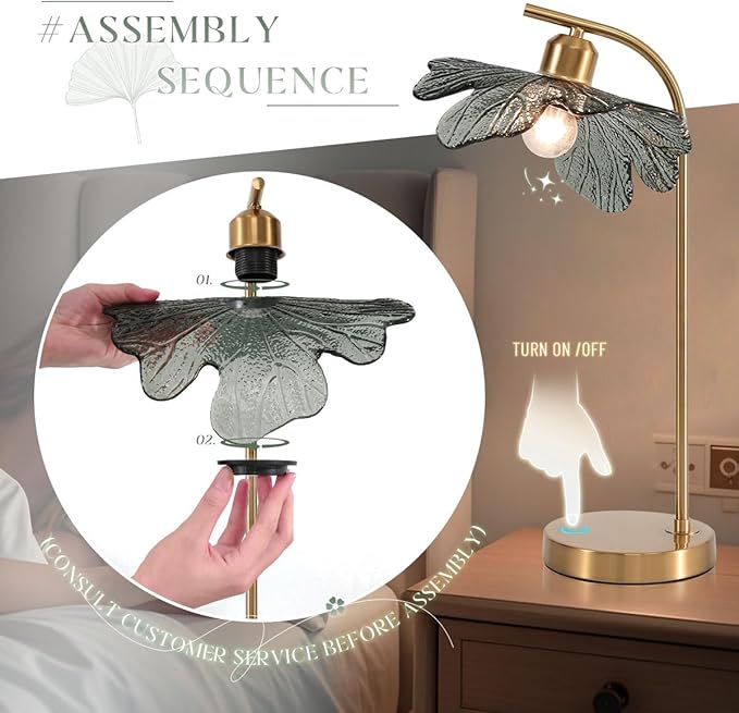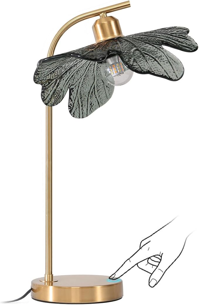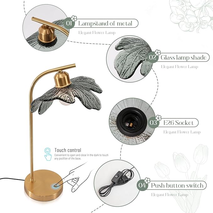 - touch table lamp is built in a sturdy metal lamp body, Dark green Flower glass Shade elegant and modern retro design, adds a special color to your space. Accessorized with an Thick glass lampshade and a metal base with Electroplating process . brighten and elegant, a clever combination of modern. Perfect for general indoor areas which including bedside table or end table, Living Room, Bedrooms, Office, Restaurant, Library and Reading Room.