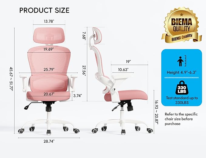 TRALT Office Chair - Ergonomic Office Chair with Back Support, Computer Chair - Home Office Desk Chairs, 330lbs Wide Seat Big and Tall Office Chairs with Headrest, Comfy Desk Chairs (Pink)