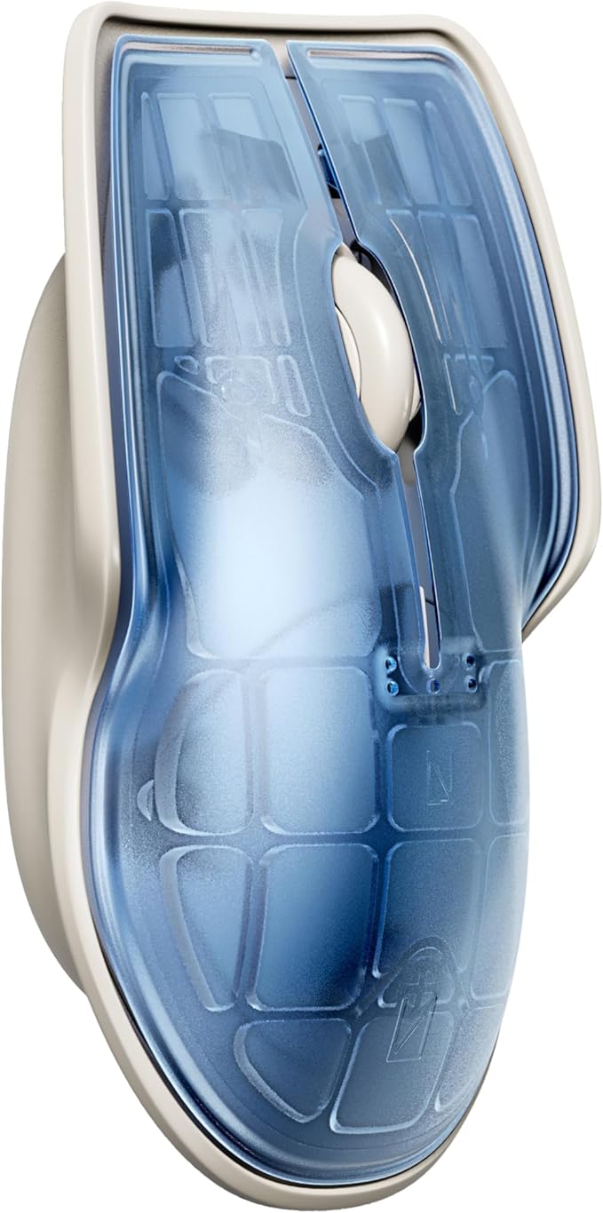 LUNAR ARTEFACTS Ambidextrous Rechargeable Bluetooth Wireless Computer Mouse Blue Translucent with White Powder Coated Aluminum, USB-C