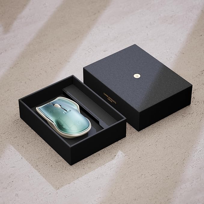 LUNAR ARTEFACTS Ambidextrous Rechargeable Bluetooth Wireless Computer Mouse Green Translucent with White Powder Coated Aluminum, USB-C