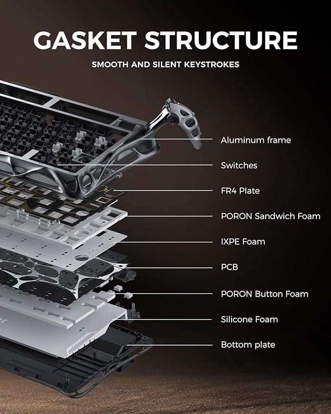 - ☁️ Premium Typing Feel with Gasket-Mounted Design - Experience a balanced and comfortable typing experience thanks to the gasket-mounted FR4 plate and 5 layers of sound-dampening foam. The 75% compact layout with 79 keys and a programmable control knob maximizes functionality while saving desk space, making it ideal for gamers, typists, and programmers alike.