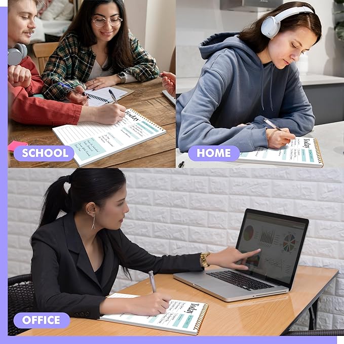 - Spiral Coil Design: This planner features a sturdy spiral coil binding, which is easy to flip open and lays flat for a comfortable writing experience. The convenient tear-off design makes it a breeze to remove completed pages without damaging the rest of your notebook—perfect for quick updates and a fresh start each day.