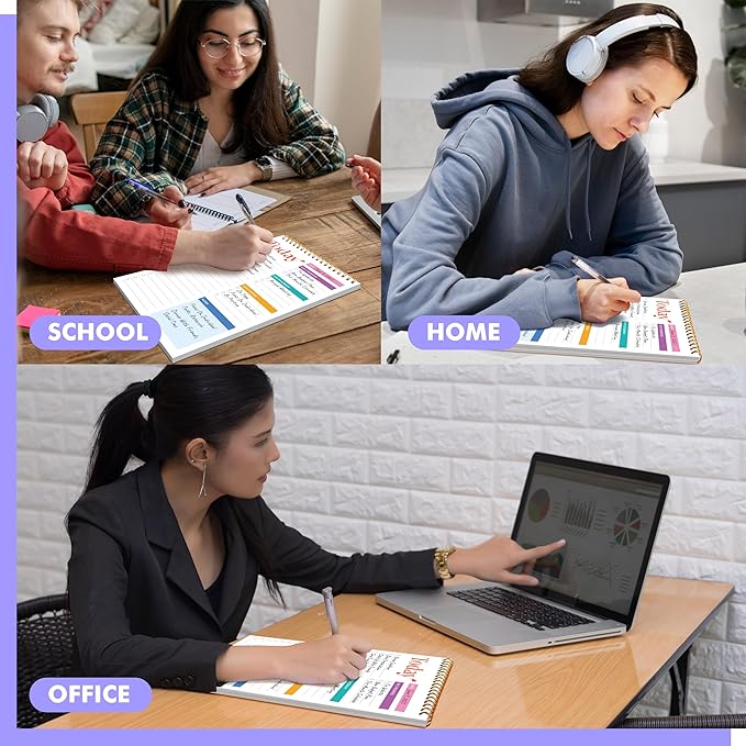 - Spiral Coil Design: This planner features a sturdy spiral coil binding, which is easy to flip open and lays flat for a comfortable writing experience. The convenient tear-off design makes it a breeze to remove completed pages without damaging the rest of your notebook—perfect for quick updates and a fresh start each day.