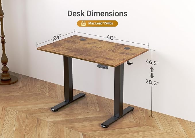 Seang Electric Standing Desk Adjustable Height, 40 x 24 Inch Sit Stand Desk with T-Shaped Frame, 3 Memory Presets & Cable Management for Home Office Computer Workstation, Black Frame/Rustic Brown Top