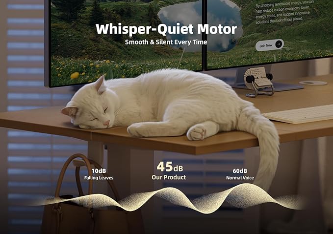 - Smart Electric Lift: Seamlessly adjusting from 28.3 inches to 46.5 inches, this adjustable desk is perfect for any situation - whether it's work, study or meetings. The whisper-quiet motor operates at under 45dB, so you can stay focused and undisturbed throughout the day.