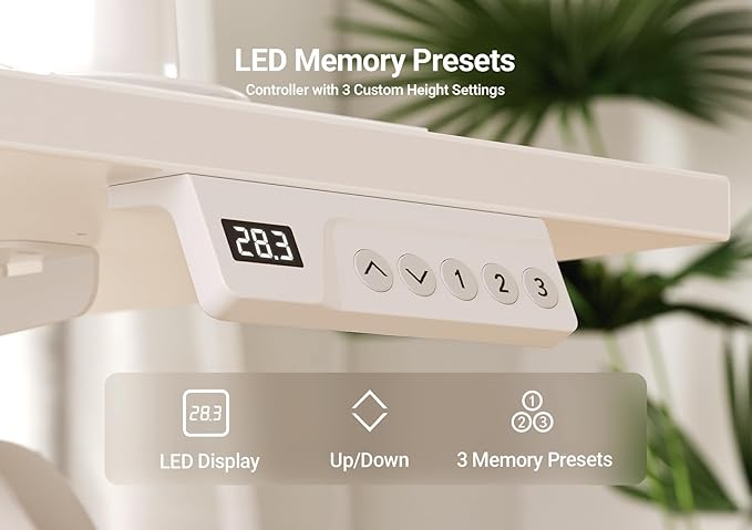 - Personalized Sit-Stand Wellness Settings: With 3 memory presets and an intuitive LED control panel, this stand up desk allows you to instantly switch between your ideal sitting, standing, and collaborative heights. One-touch standing helps reduce fatigue from long hours of sitting.
