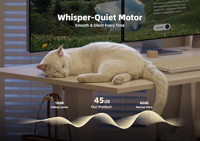 - Smart Electric Lift: Seamlessly adjusting from 28.3 inches to 46.5 inches, this adjustable desk is perfect for any situation - whether it's work, study or meetings. The whisper-quiet motor operates at under 45dB, so you can stay focused and undisturbed throughout the day.