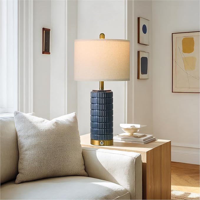- Modern Ceramic Lamps:This farmhouse lamps for night stands, with a blue ceramic lamp body with gold base, not only boasts a simple and elegant design but also easily integrates into your house decor. This blue table lamps for living room is particularly well-suited for modern or farmhouse style interiors. This ceramic nightstand lamp adds a glance of elegance to your home, perfect for Home Office Setup, Bedroom Decor, Living Room Enhancements, New Apartment Setup and Home Renovation Project.