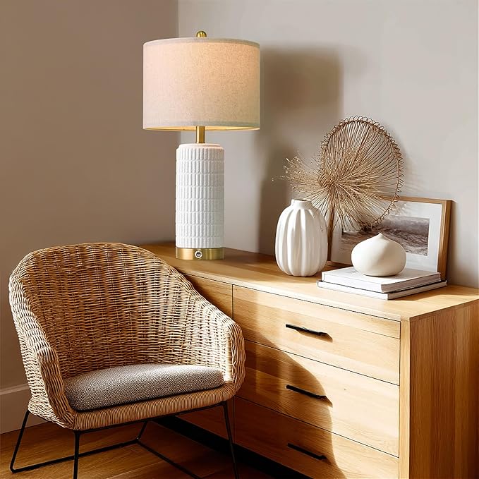 - Stone-Like Ceramic Lamps: This farmhouse tall lamps feature a white ceramic base with gold base and with a matte-textured stone-like design on its surface. Not only boasts a simple and elegant design but also easily integrates into your house decor. This lamps for bedroom is particularly well-suited for modern or farmhouse style interiors. This ceramic nightstand lamp adds a glance of elegance to your home, perfect for Home Office Setup, Bedroom Decor, Living Room Enhancements, New Apartment Setup and Home Renovation Project.