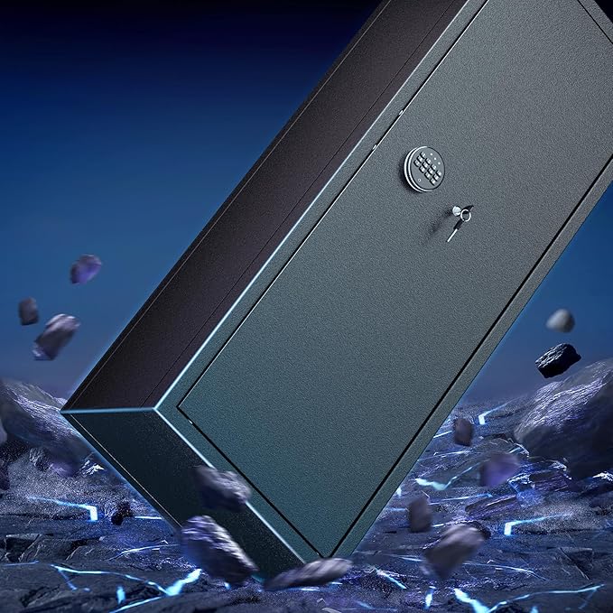 - [Digital Password Lock]:Greenvelly locking large gun cabinet adopt digital unlock module.You could choose 3-8 digits as the unlock password.Besides, the gun safe equipped dual alarm system. There are indicator lights on the digital lock to indicate the opening&closing state or whether the battery is in a low state..The gun safe suit for garage,home,office,etc..