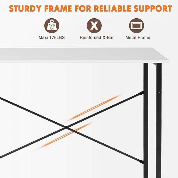 - Durable Design: The writing desk is made of high-quality materials. The desktop is made of thick particle board, which is resistant to scratches, water, and damage, making it easy to clean. The metal frame and corner reinforcement structure provide reliable support for all day use, weighing up to 176 pounds