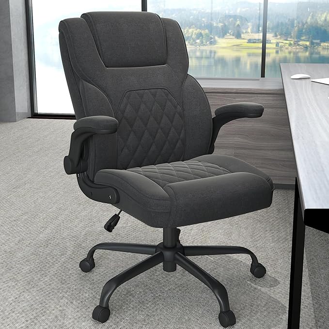 - COMFY PU LEATHER: Featured by breathable and durable leather, the office chair with flip up arms offers a suitable blend of elegance and durability. Make it both practical and stylish for home offices or executive workplaces