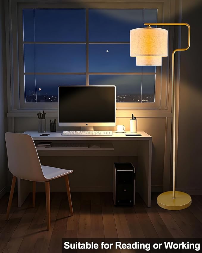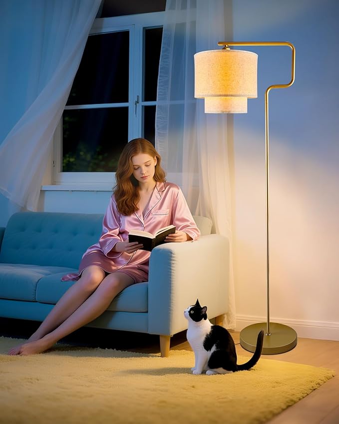 - 💡【Double Linen Design】Lightdot unique floor lamp features a gracefully curved lamp head crowned with a double-layer linen fabric shade. The double-layer design casts a captivating grid-patterned glow while beautifully containing the light, creating a warm and romantic ambiance.