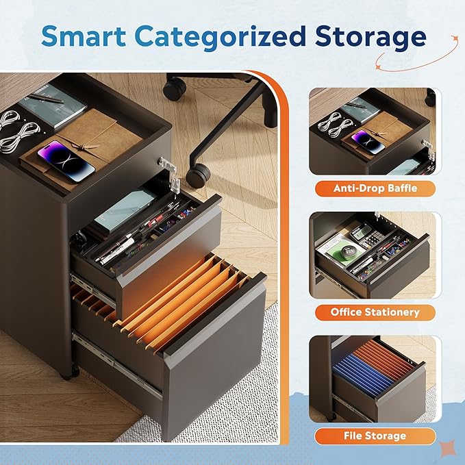 - 【Raised Top Edge for Extra Storage】: Small filing cabinet raised edge on top adds an extra storage layer for books, stationery, or office supplies—keeps items from sliding off.