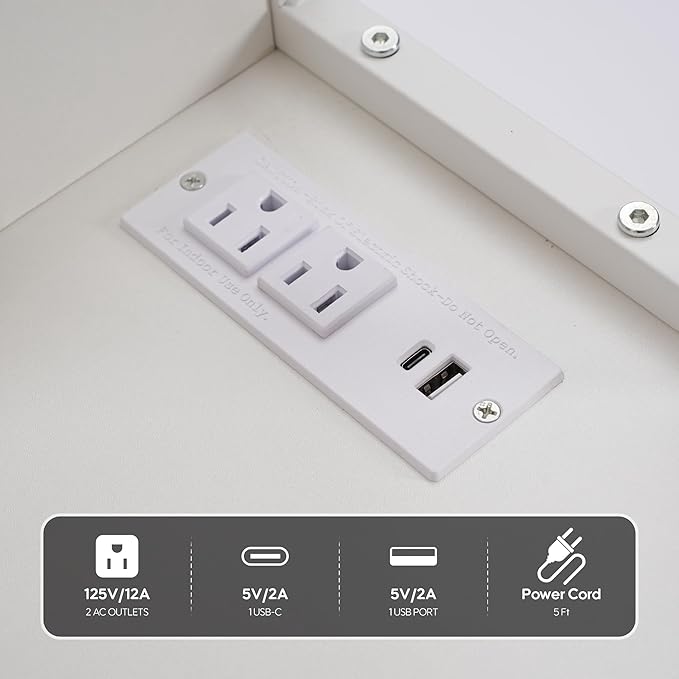 - 【Integrated Charging Station】Stay powered up with ease! The built-in power board features 2 outlets, 1 USB port, and 1 Type-C port, allowing you to charge up to four devices simultaneously. Whether it's your phone, printer, laptop, or other office electronics, you can keep your devices charged and ready while you work.