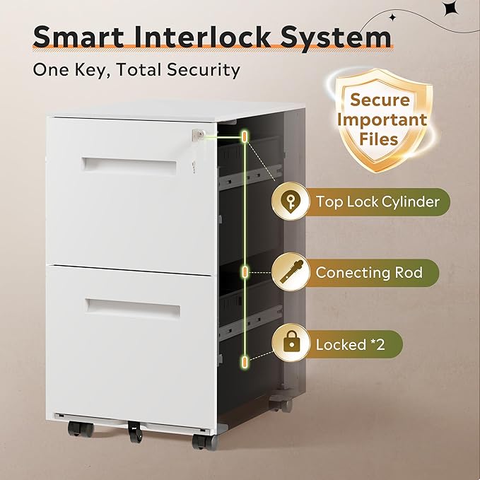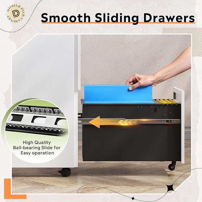 - âď¸ăStable & Easy to MoveăThis mobile file cabinet features five castersâtwo front locking wheels and a center support caster to prevent tippingâoffering both mobility and stability across office settings.