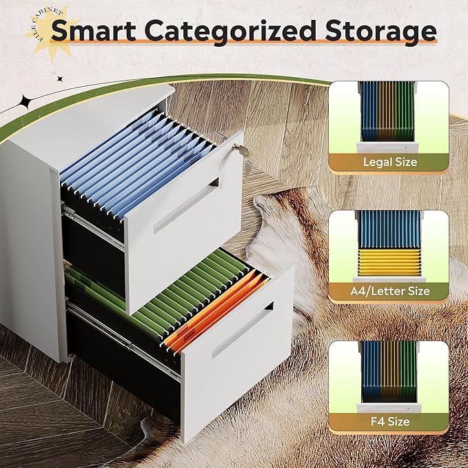 - đď¸ăExtra-Large Storage CapacityăFeatures two extra-wide and deep drawers that support hanging A4, F4, Legal, and Letter-size files. Ideal for users with high-volume storage needs, this 2-drawer file cabinet helps keep files organized and boosts work efficiency.