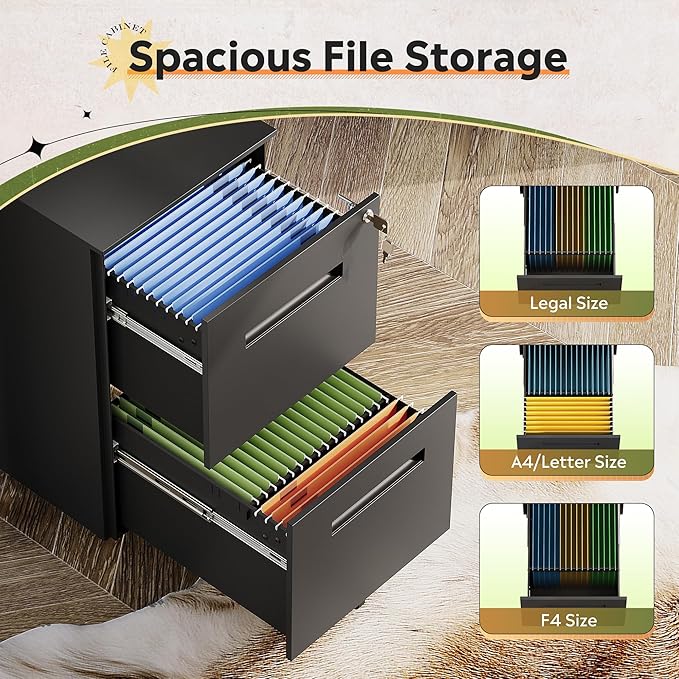 - đď¸ăExtra-Large Storage CapacityăFeatures two extra-wide and deep drawers that support hanging A4, F4, Legal, and Letter-size files. Ideal for users with high-volume storage needs, this 2-drawer file cabinet helps keep files organized and boosts work efficiency.