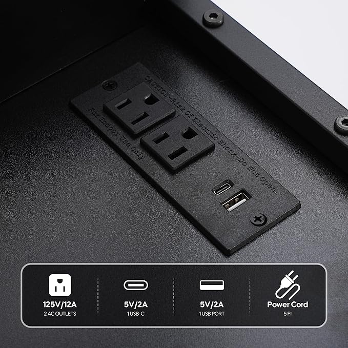 - 【Integrated Charging Station】Stay powered up with ease! The built-in power board features 2 outlets, 1 USB port, and 1 Type-C port, allowing you to charge up to four devices simultaneously. Whether it's your phone, printer, laptop, or other office electronics, you can keep your devices charged and ready while you work.