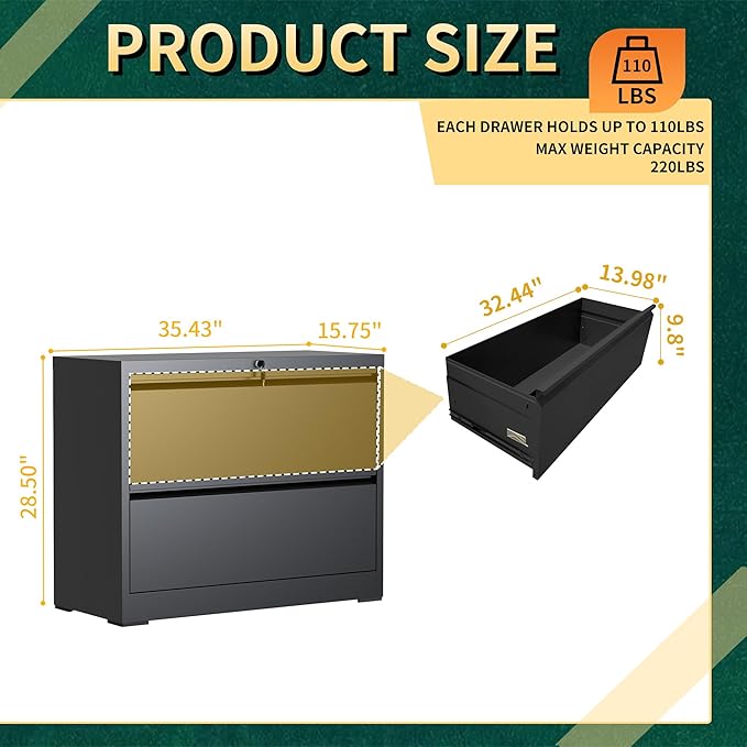 - 【Sturdy Cold-Rolled Steel Construction】Our lateral file cabinet crafted from cold-rolled steel, whole is designed to stay sturdy and does not deform. With a powder coating process that bonds and bakes the protective coating to the bare metal, the file cabinet 2 drawer lateral forms an effective barrier against corrosion. And its reinforced construction supports up to 330 lbs, which can long-lasting for.