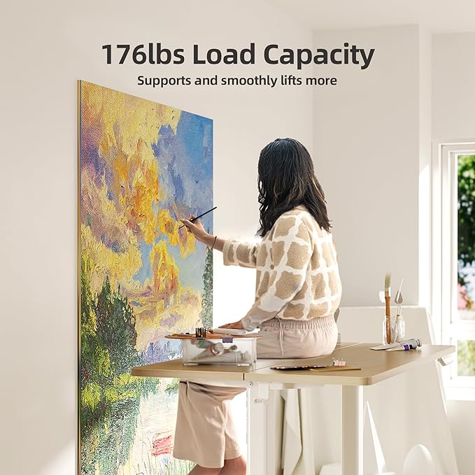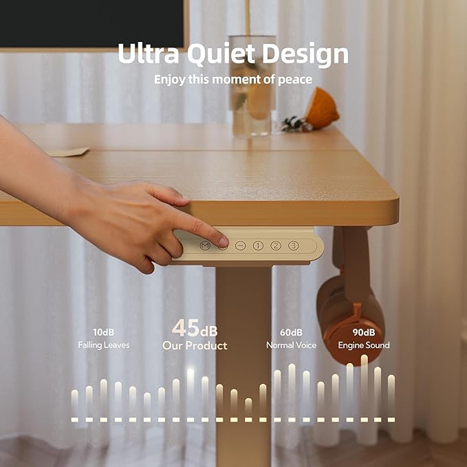 - 【Excellent Stability】The electric standing desk features a robust T-shaped steel frame and a durable wood desktop, holding up to 176 pounds. The wide desk foot design makes the adjustable table maintains good stability eliminating any distractions from wobbling even when at the full height. Certified for 50,000 durability cycles, this stand up desk maintains ≤45dB whisper-quiet operation.