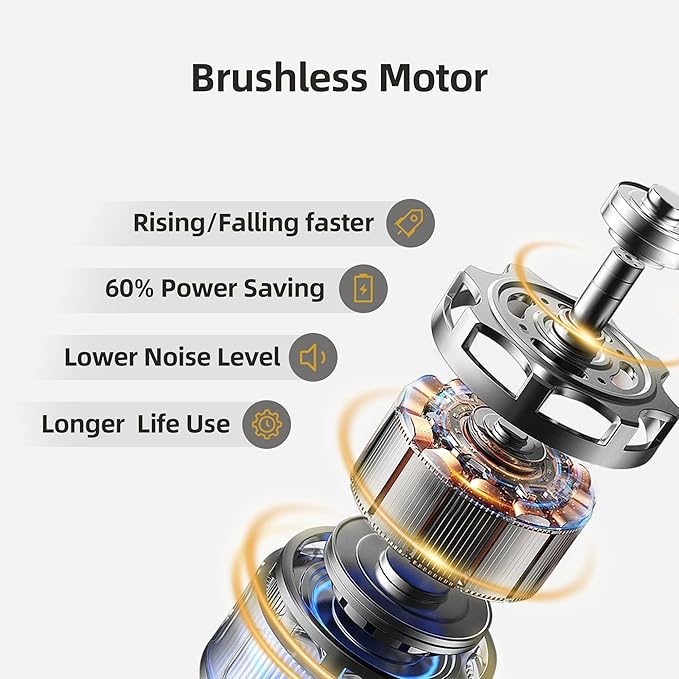 - 【Upgraded Motor】 As one of the most important components of the standing computer desk, we have upgraded the single motor from a brushed motor to a brushless motor. This upgrade extends the motor life to 7-10 years (60% energy-efficient compared to brushed motors) and requires no maintenance. In addition, the stand up desk runs faster and more stably, allowing for smooth switching between heights.