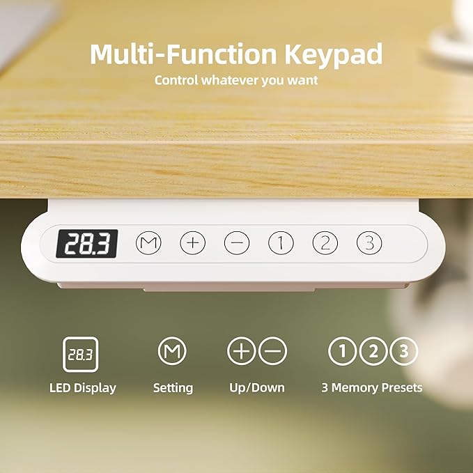 - 【Precise & Memory Electric Lift】Freely choose the height of the electric standing desk from 28.3 inches to 46.5 inches. Set 3 programmable memory presets via rhe LED touchpad, which can quickly and accurately adjust to your preset comfortable height, catering to various scenarios, including work and leisure. INNOVAR height-adjustable desk is ideal for dynamic home offices, work stations, or collaborative spaces.