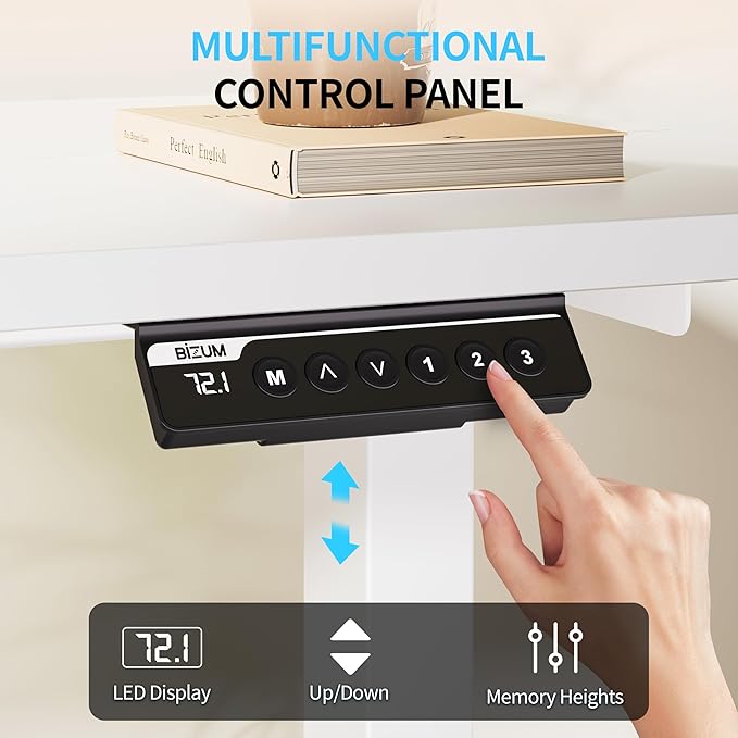 BIZUM Electric Standing Desk, 55x24 inches Height Adjustable Desk, Sit to Stand Desks Memory Gaming Computer Workstation for Home Office, White