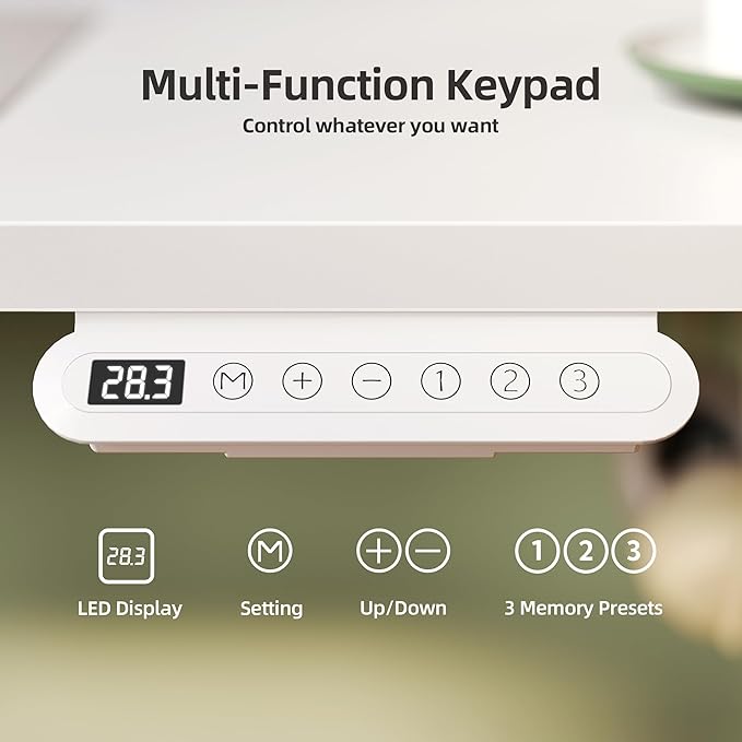 - 【Precise & Memory Electric Lift】Freely choose the height of the electric standing desk from 28.3 inches to 46.5 inches. Set 3 programmable memory presets via rhe LED touchpad, which can quickly and accurately adjust to your preset comfortable height, catering to various scenarios, including work and leisure. INNOVAR height-adjustable desk is ideal for dynamic home offices, work stations, or collaborative spaces.