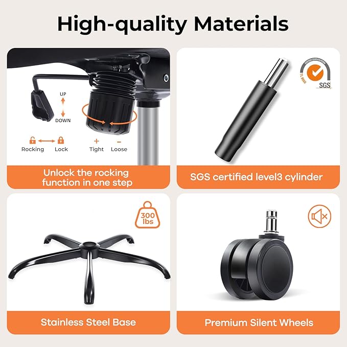 - 【Rocking Function】 Flexible rocking function (maximum rocking tilt 130°), with simple adjustment, you can switch freely between the focused upright and relaxed rocking postures, helping you to effectively relax and rest during work