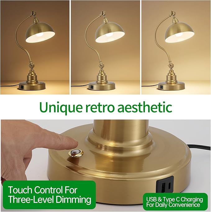 - 【Practicality and Decoration】 - LED warm light three-level dimmable bulb included to ensure the light effect and protect your eyes. The USB and Type C charging ports make daily use more convenient. The heavy-duty iron lamp body, with a finely processed pure iron lamp pole and shade, will not deform even under strong impact, unlike those easily scrapped plastic desk lamps. It is a home desk lamp that can be used for decades.
