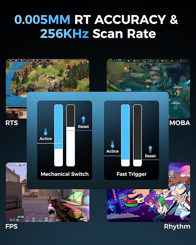 - Special Feature : 0.005 Rapid Trigger, 8000Hz Polling Rate, Adjustable Actuation, Cyberpunk Design, Hall Effect Switch