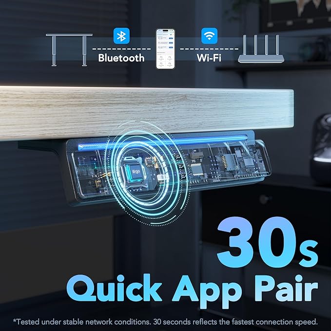 - SMART CONTROL: Experience the new smart electric standing desk that uses an App(Ergo BQ) to find your perfect sit-stand height. Enjoy hands-free control with Alexa, Google, and Siri for effortless ergonomic comfort.