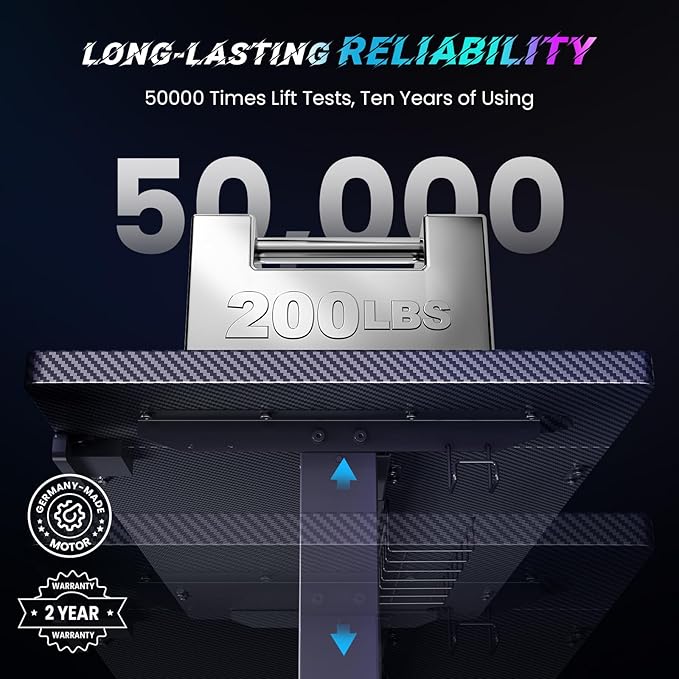 - Reliable&Durable : This electric standing desk lifting power enough to fully loaded office and game equipment up to 200lbs. 50000 times lift tests for years of using.