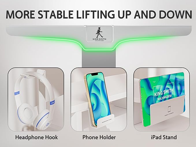 - Ideal Computer Workstation: Designed with many thoughtful storage ideas, such as 1 fabric drawer, 1 phone holder, 1 ipad stand, 1 headphone hook and 2 bag hooks, WALKINGDESK height adjustable desk creats a perfect working room for every home office worker.