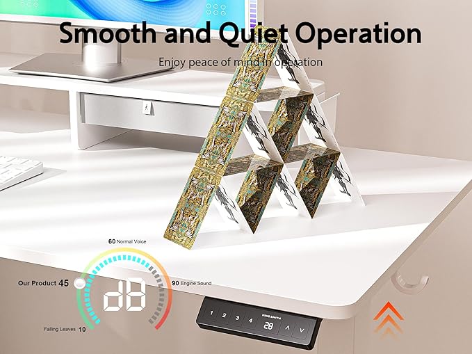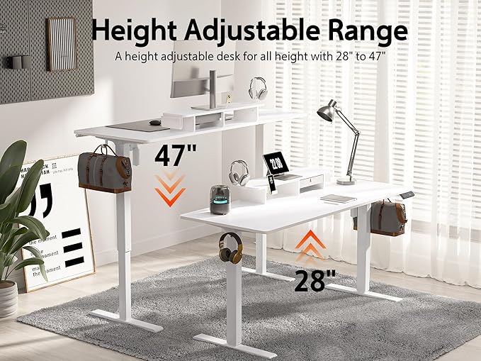 - Electric Lifting System: The sit to stand desk has advanced motor that can support height adjustment between 28''-47'' with low noise (< 45 dB) while running. The lifting speed is 20mm/s. Switch from sitting to standing in seconds!